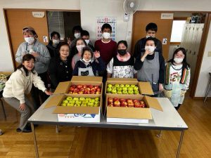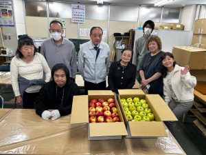 2025年11月12日(水)潟上市天王下出戸1-1加賀谷果樹園の王林紅白リンゴ80kg320個を2支援へお届け致しました。